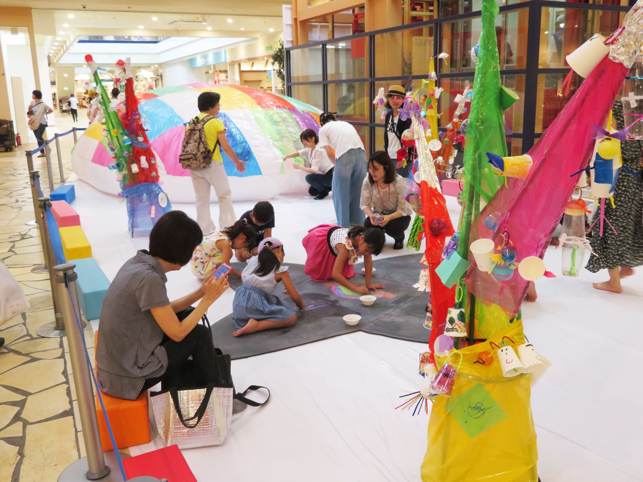 田町グランパークのエントランスロビーにて遊びながらアートするコミュニケーション型イベントを開催!