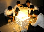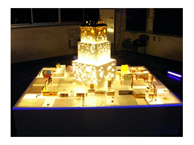 「とがびアートプロジェクト2006」においてのプロジェクト。トータルテーマである戸倉上山田に関するキッズ学芸員の考えを元に、地元ではなじみのある「荒砥城」にスポットをあててのプラン展開をします。お城にまつわる歴史や建築様式などを調査、レポートをまとめて史上の荒砥城を知るのとともに、こんなのあったらいいな~という空想の城をドローイングし、実際には存在しなかった城の象徴である「天守閣」をレゴブロックを中心にした素材でつくり、インスタレーションします。