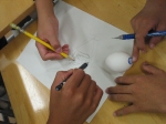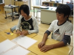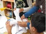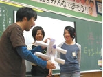 工学系の大学生の授業などで見られるEgg drop。小学生の段階では「図画工作」という授業が中学校からは「美術」に変わります。「美術」は単に絵を描いたり、物を作ったりする技術を得とくするだけのものではなく、考える「コンセプトを立てる」という事も大切だという事を知ってほしいという気持ちからあえてこのタイミングで取り入れました。「卵を割らずに運ぶ」これだけの事に夢中になれる児童の姿を見て、とても安心する気持ちになりました。