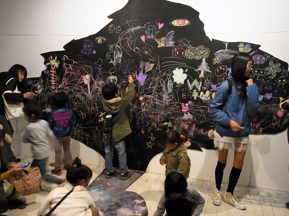 立川市の「市の木」であるケヤキ、「市の花」であるコブシをモチーフにしてシルエットを使った観客参加型の作品。プログラムタイマーにより数分おきにタングステン電球とブラックライトに変わり、ドローイングが発光する仕組み。