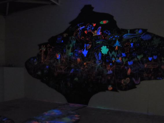 Drawing boad /合板・黒板塗料・ブラックライト・電球・タイマーetc. 2013