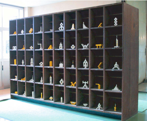内と外をつなぐアイテムである下駄箱の機能を利用。履き替える時にレゴのオブジェクトを動かすというルールを設定。時間とともに動き、変化していく参加型インスタレーション。